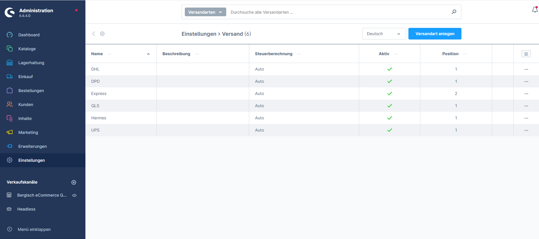 Versandart verwalten