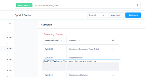 Du hast die Möglichkeit, in verschiedenen Kategorien immer wieder manuell sortierte Produkte anzuzeigen. So kannst du Angebote, Neuheiten oder Renner und Penner ganz einfach in die einzelnen Kategorien verschieben und nach deinem Wunsch sortieren.